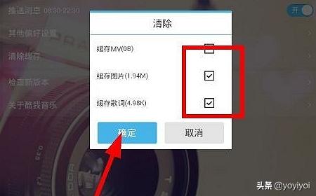 9、酷我音乐听时间长了,会有点卡,或是里面的文件太多了,那么如何清理一下呢,我们可以点一下图下的位置,也就是缓存清理。