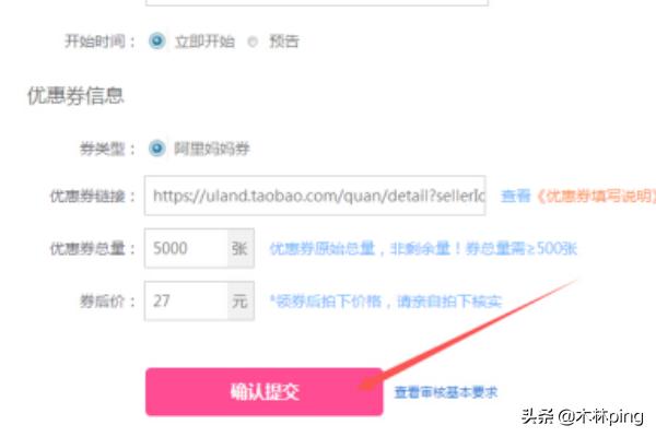 5、优惠券信息 优惠券链接:优惠券是商家来设置的,在商家后台的营销中心,全部填6写完成后,点击确认提交。