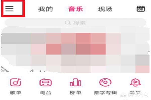 1、起先进入‘咪咕音乐’的初阶页面后,在最左角有三道灰杠,看到并指按这里。