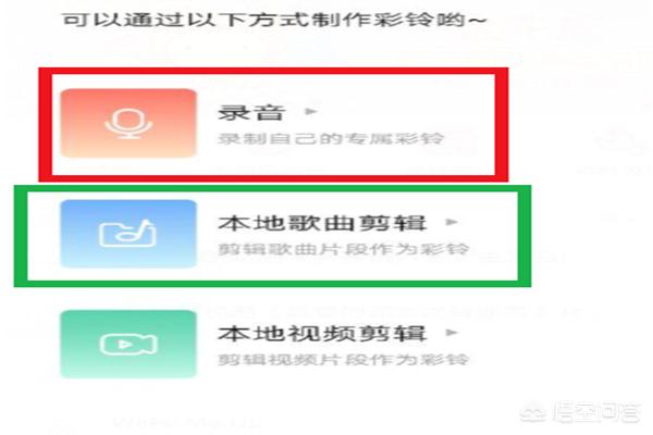 3、此页很明晰的给出,咱们可以采用录音来做为专独的彩铃,也能从本地的挑纳来择剪,轻按首栏。
