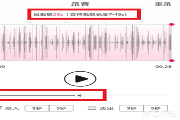 4、点触粉圈钮,各自可以自由发声,或是录下其他的声效亦可,依照拉动圆点自如截取秒数,之后还可做此试听,最后设彩即可。
