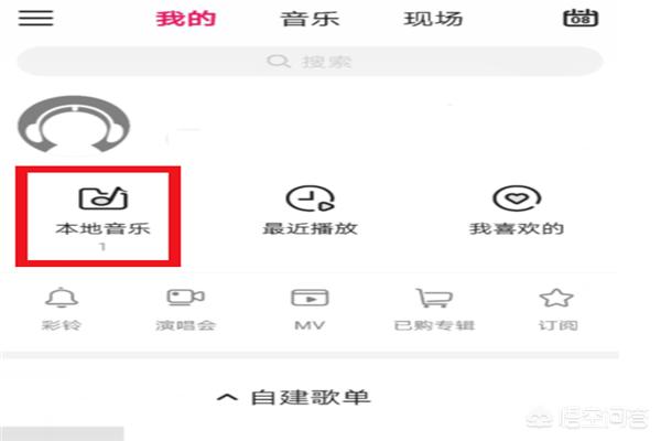 7、来至初页点左上方的‘我的’,以下所呈出的灰标即为刚才所剪裁的本地乐曲的入口,点进。