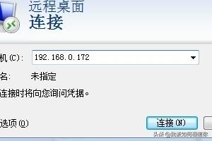 4、点击“远程桌面连接”之后,弹出远程桌面连接的窗口。在计算机一栏输入对方电脑的ip地址,然后点击【连接】,等待一段时间。