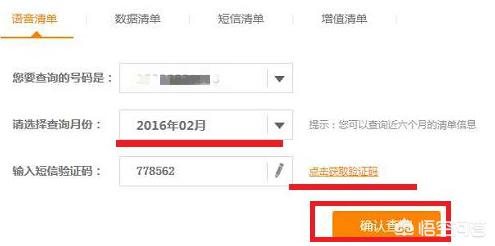 二、然后选择你要查询的月份,点击获取短信验证码,点击“确认查询”;
