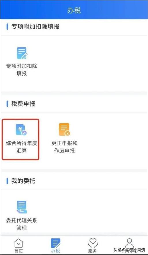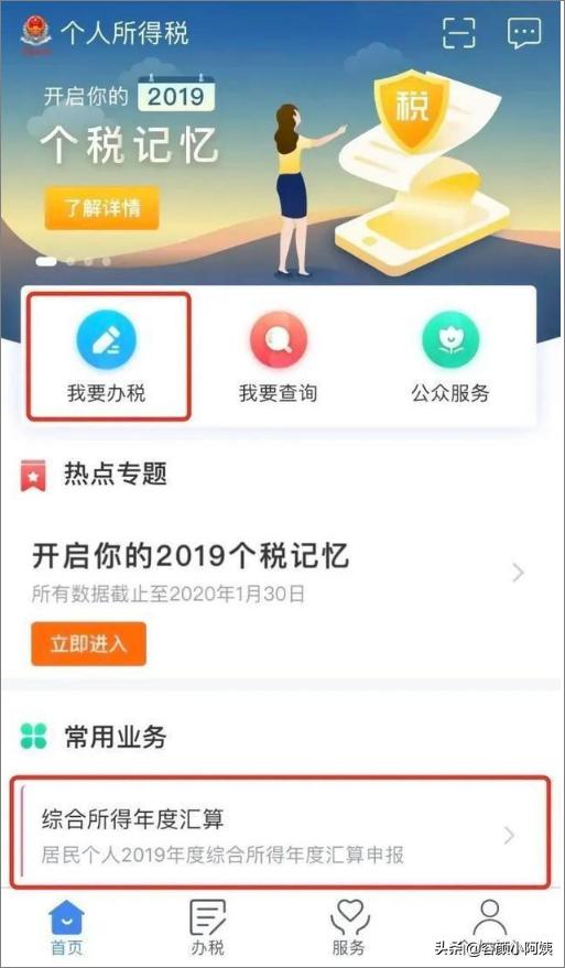 1、下载【个人所得税 APP】,打开APP后,可从以下入口进入年度汇算:
