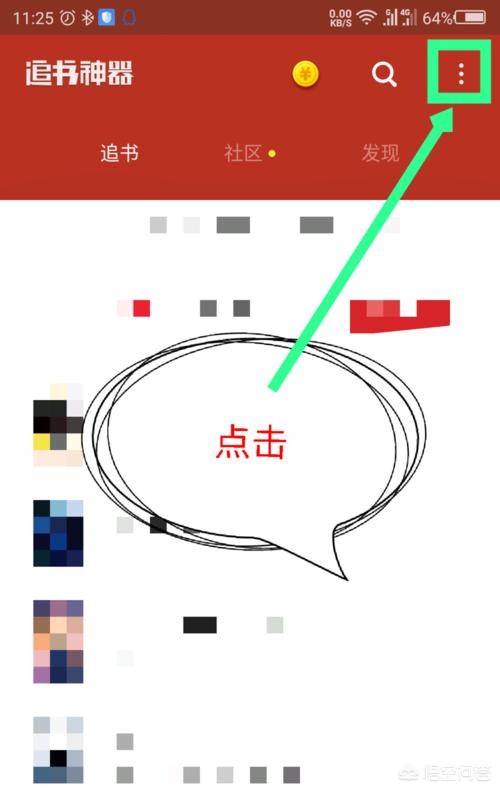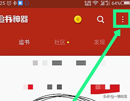4、返回追书神器主界面,点击顶部右上角的三个点,如图所示。