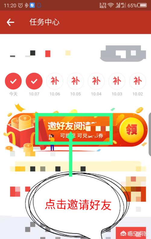 2、点击金币后,打开任务中心界面。在签到下面是邀请好友阅读选项,点击邀请好友,如图所示。