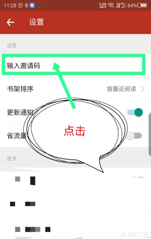 6.打开设置界面后,第一个选项就是输入邀请码,点击一下输入。如图所示