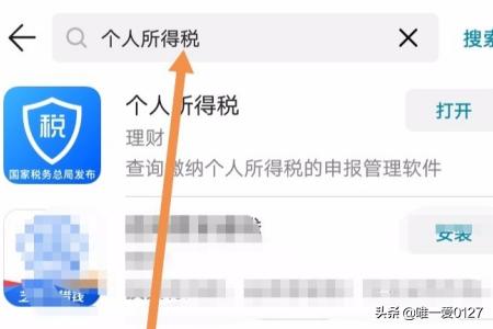 2、第二步:在搜索框输入“个人所得税”,点击搜索。找到“个人所得税”,一般都是排在第一个,点击安装。安装完成后点击打开。