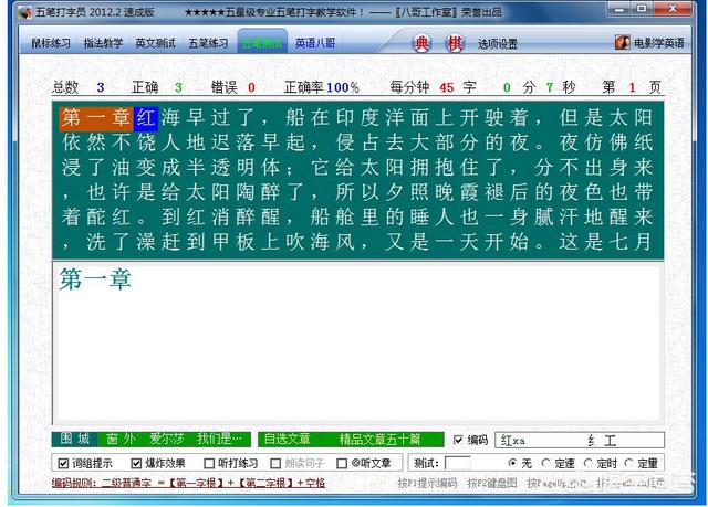记得以前念书的时候,用过一款不错的练打字软件,叫五笔八哥。这个是用来练习五笔的,有字根提示,还有练习的文章。而且如果你还可以自己去找一些文章,复制到这个软件的相关目录下,就能练习打新的文章。这个除了了可以练习五笔以外,还有专门的英文的文章,帮助我们练习拼音打字。