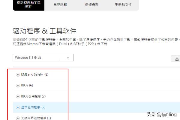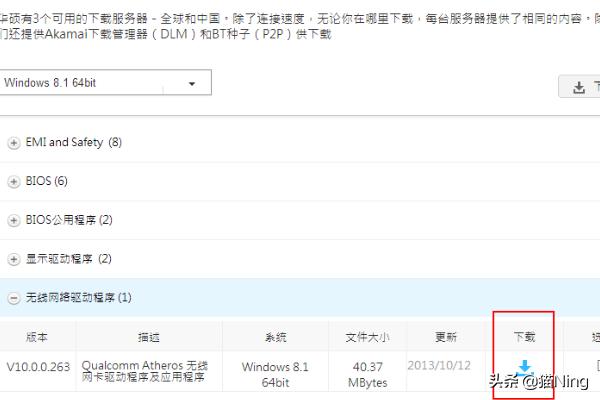 7、选择好系统后就可以下载此电脑的官方驱动程序了,如果自己的电脑网上驱动不兼容或者没有正常发挥作用就选择下载无线网络驱动。其他类似。