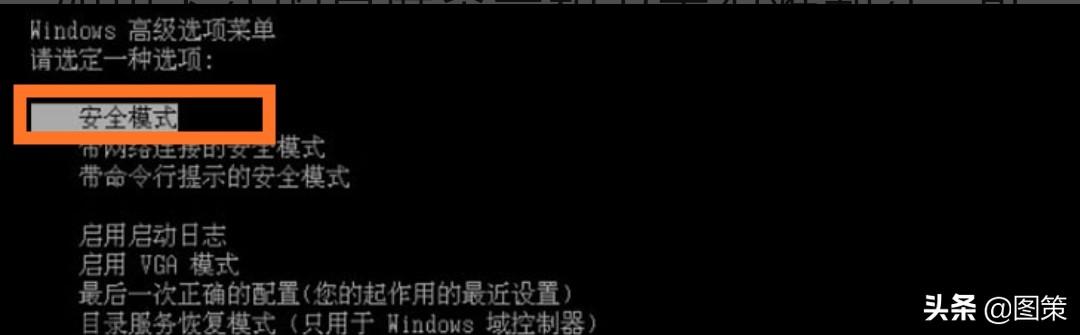 1、重启电脑,在电脑开机的过程中按F8,进入下图的黑色背景页面,点击页面的“安全模式”。