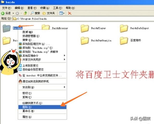 3、进入页面后,找到名为“uninst.exe”的文件,双击卸载,再把“百度管家”和“百度卫士”的文件夹删除掉,以清除卸载残留文件。