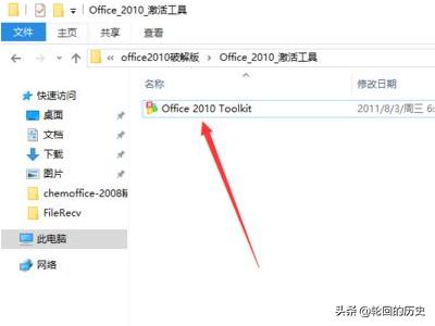4、打开office2010任意一个软件,跳出一个对话框,要求输入秘钥,这个时候大家点击破解程序;