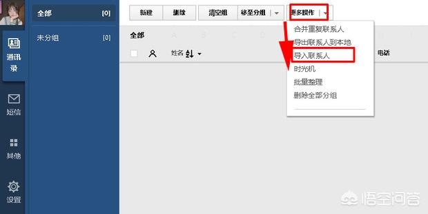 2、在主界面内,点击“更多操作”,获取下拉列表,点击“导入联系人”;