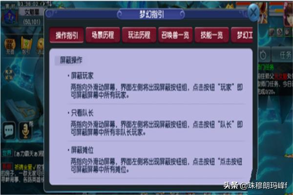 2、在游戏界面左上角点击【指引】按钮,可以查看在互通幻境中常用操作的说明。
