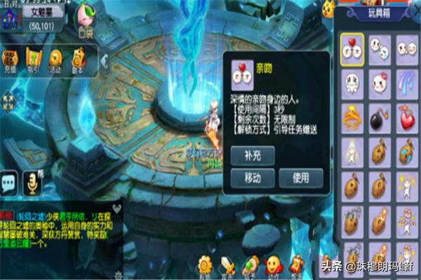 2点击需要丢弃或者需要移动的物品,界面将显示物品的信息,信息界面有使用和移动两个选项,可以移动到背包或者行囊等操作,至于删除物品,物品信息显示界面左侧有个小的删除图标,点击即可删除物品。