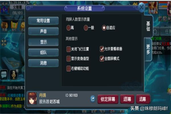 5、在互通版中,使用全面屏登录的互通幻境,在人物气血条处可能会被显示屏的圆角遮蔽,这时在系统设置的显示设置中,可以打钩全面屏模式,即可把人物头像与血条位置互换,以便更清晰的看清当前状态。