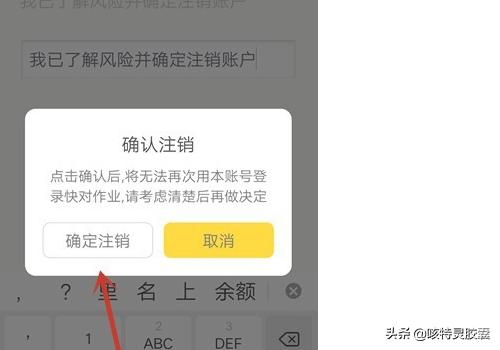 第七步 然后弹出来的提示,点击【确定注销】按钮,就可以注销快对作业账号。