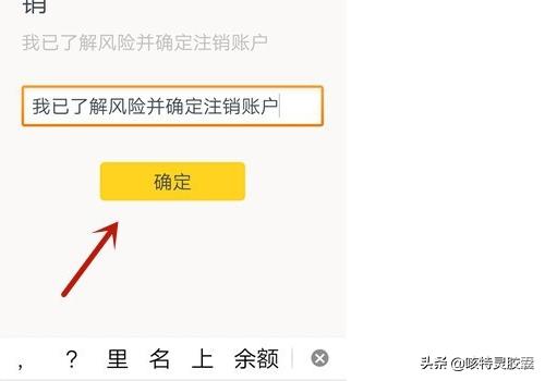 第六步 然后在里面输入【我已了解风险并确定注销账户】,点击【确定】按钮。