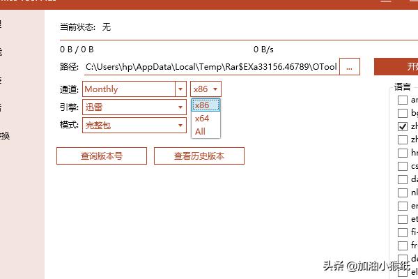 4、卸载完成后,点击左侧的下载,选择2019通道,选择与电脑位数相同的,如64位就选择x64,选好之后就可以点击开始了;
