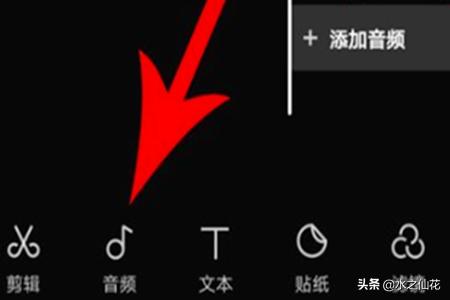 2、导入完成之后即可进入到“视频编辑”界面,在该界面我们就可以在底端点击选择“音频”功能,在下方列表中点击“音乐”按钮,找到自己感兴趣的在线卡点歌曲。