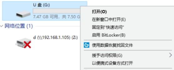 1.首先在电脑上选择需要去除“写保护”的U盘盘符,右键鼠标展开功能菜单。