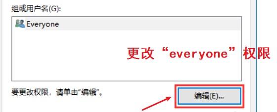 4.在U盘权限管理页面中,选择对“everyone”权限进行更改,点击“编辑”进入权限编辑页面。