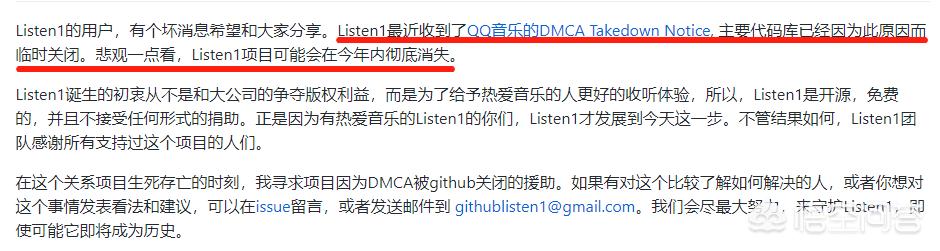 查了一下发现, listen1 因为被 QQ 音乐提出版权警告,目前已经到了临近关闭的状态。