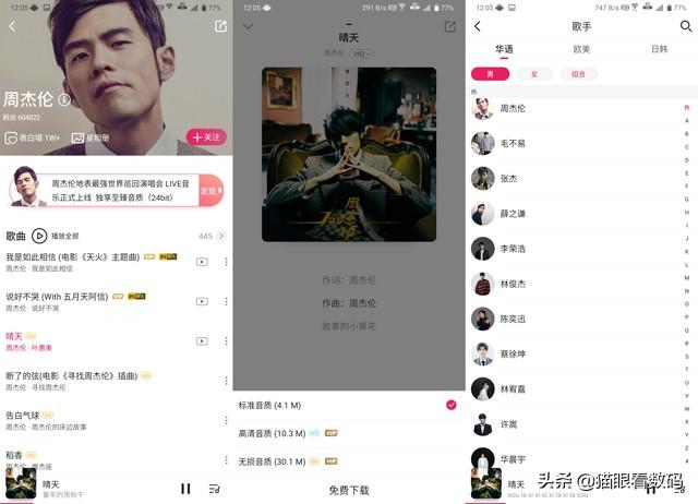 曲库量齐全度对比:虾米音乐> 网易云音乐 > QQ音乐。