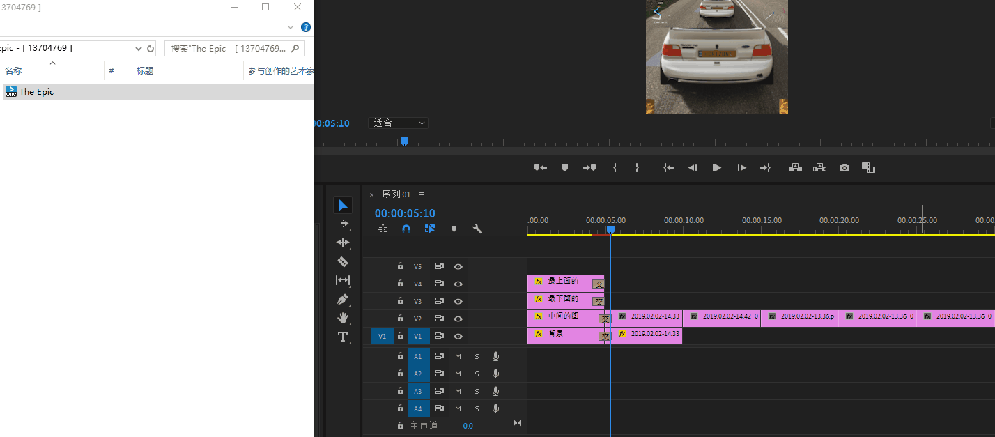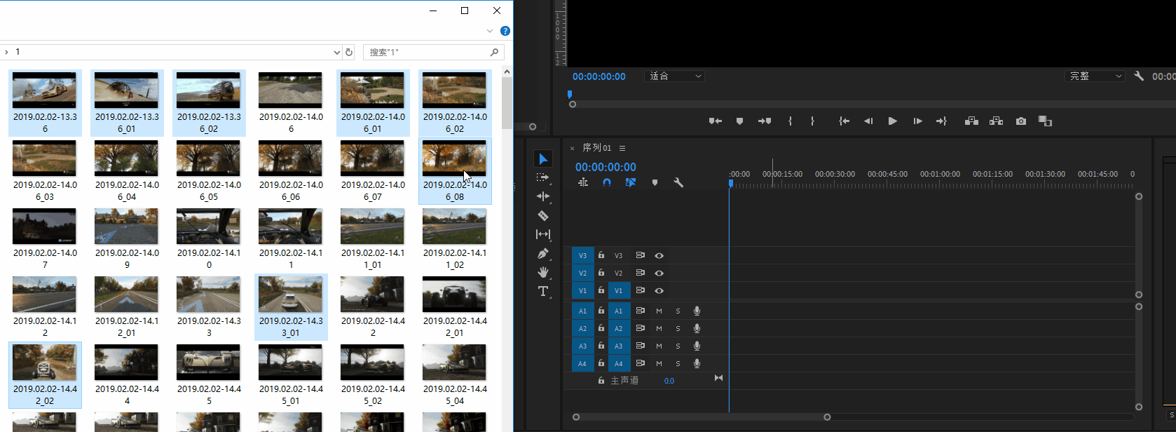 然后从windows资源管理器拖图片到Premiere时间轴上,可以一次拖很多张,也可以一张一张的拖入。