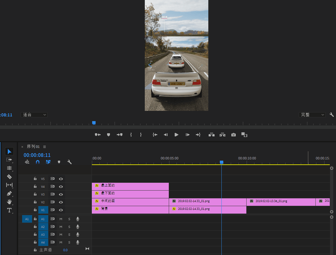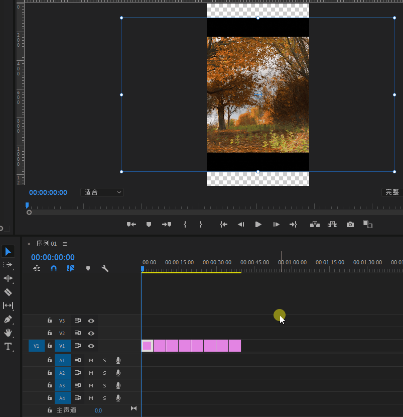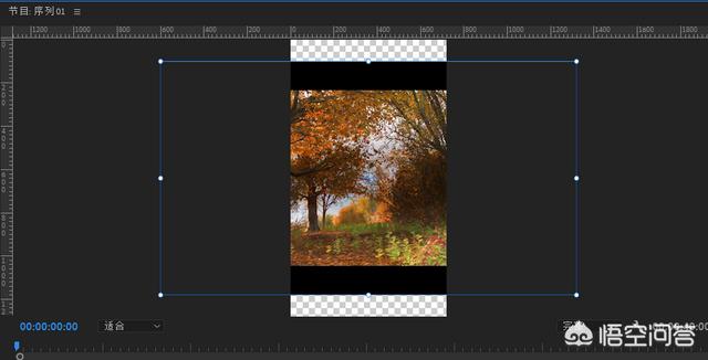 导入后的图片(下图),在节目监视器上能看到,和设置的竖屏不合适,只能显示一部分,在画面外还有很多无法显示。有两个办法,一是缩小图片,能显示全图;二是放大图片,充满屏幕,只显示部分图片内容。