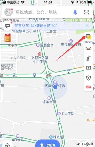 2、进入高德地图页面后,点击右上角的图标,如图所示。