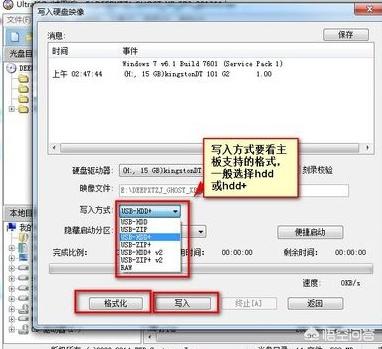 4、写入方式有zip和hdd两种,一般选择hdd或hdd+,选择了写入方式之后要先格式化,格式化完毕之后点击写入等待写入完毕即可,如图所示。