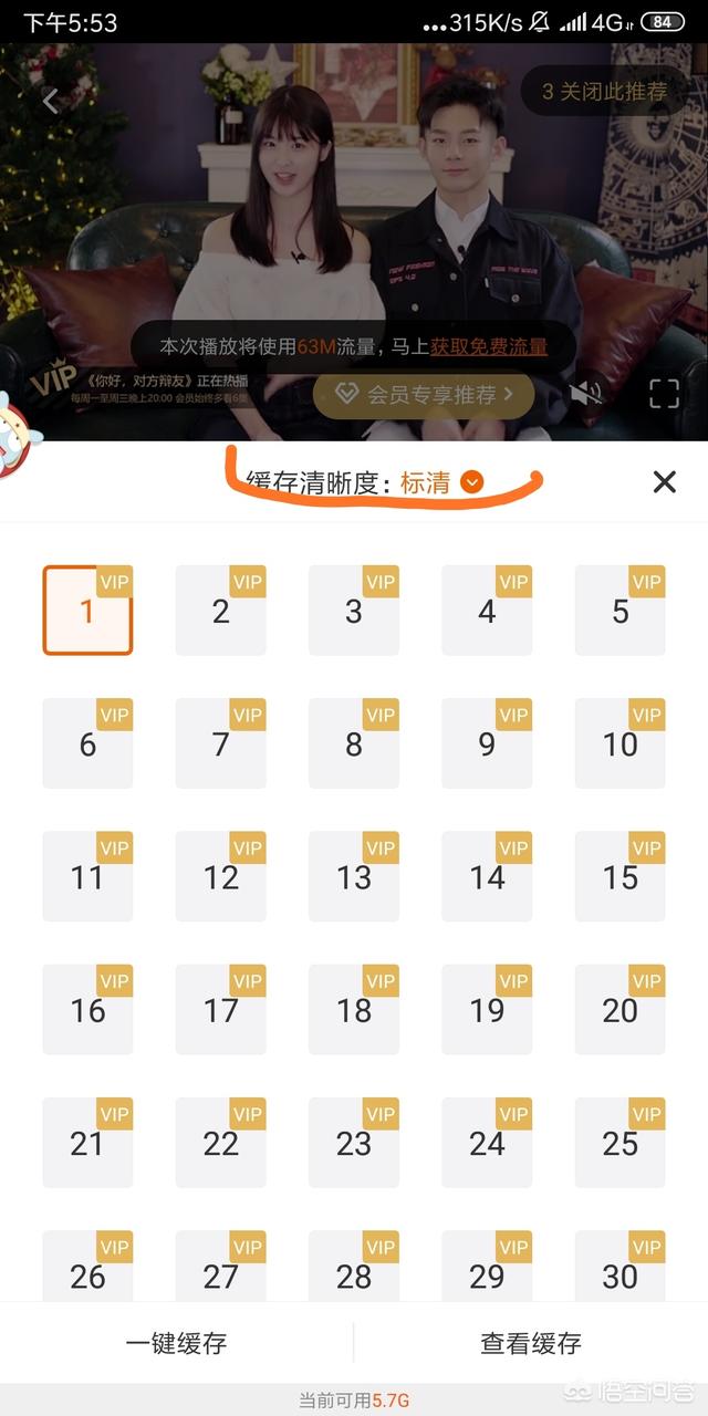 第三步选择要下载的集数,也可以设置一下缓存的清晰度