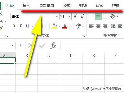 3、而下一行,是菜单栏。开始、插入、页面布局、公式等等,这些叫选项卡。