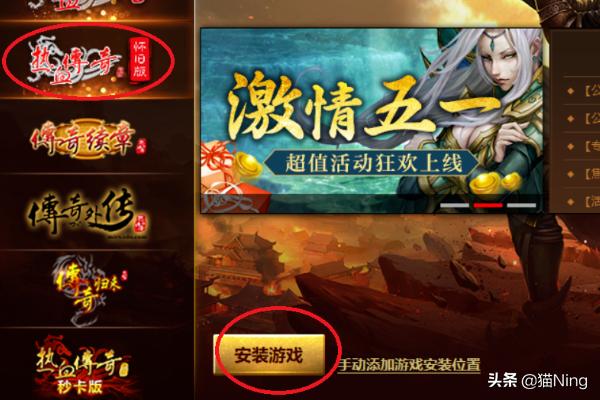 5、安装好后,又会跳出一个传奇整合类的对话框,点击‘热血传奇怀旧版’,再点击安装。
