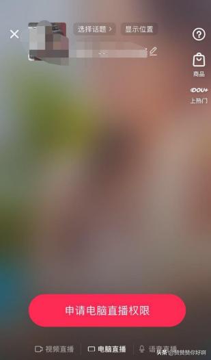 1.以抖音直播为例,你需要申请电脑直播权限。