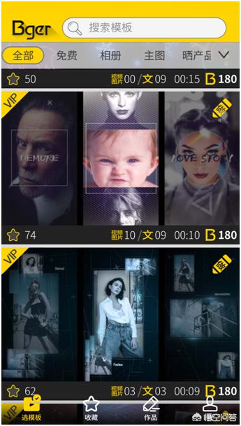 小影的模板很少,不过它主要也是做相册这类的,比较简单,单纯的图片展示,也可以剪辑视频,成片画质没那么好,但用于朋友圈还是可以的,模板好像都是免费的,广告多,而且得看完。
