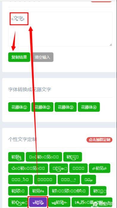 点击下边的【个性文字定制】或者【魔法字符单个】,即可看到生成的花藤体字体。【魔法字符单个】是单个花藤字体符号,大家可以按照需要自行组合,生成自己专属的花藤体文字。比如:【??哥????客??????】,这个花藤体文字组合了很多种魔法字符,大家可以自由组合。