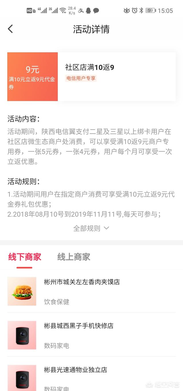 以前是满10元直接减去5元,现在改成送5元优惠券了,可以用来下次购物,也可以在翼支付app交花费,生活缴费。