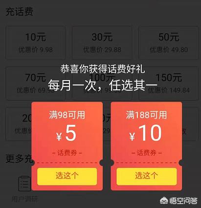 拼多多有优惠券,基本7-10块。但是门槛高,大约充188才可以用,不过我家每个月套餐费209,除去返费60,还要充150左右。