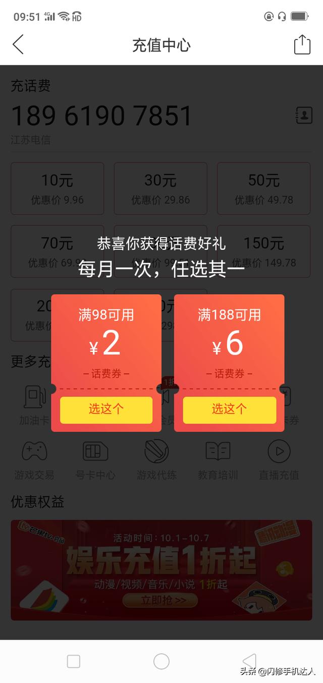 那么,就分享个人在日常中充值话费,综合来讲,最优惠的