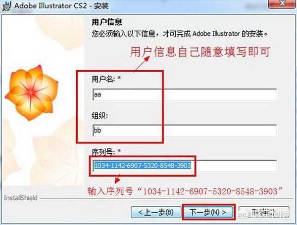 4、自定义输入用户信息,输入序列号: