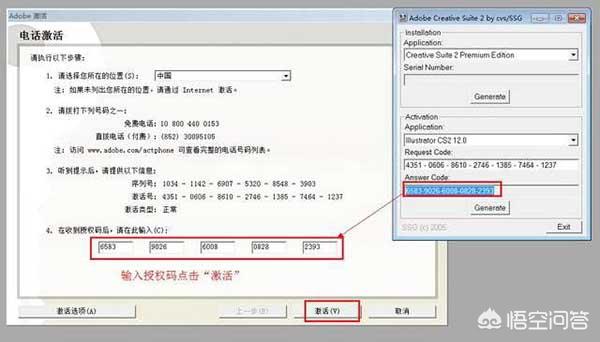 11、把得到的授权码输入到授权码输入框内,点击“激活”。