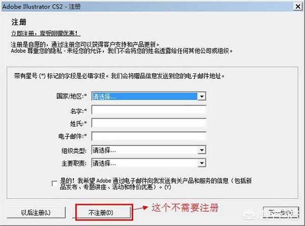 13、点击“不注册”。