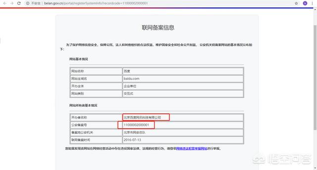 下面说说第二种,如何根据备案信息判断其官网真实性,首先登陆目标网站,如baidu.com,在下面可以看到如下信息: