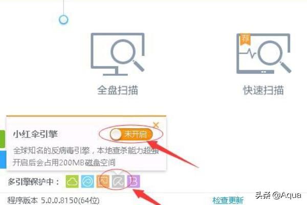 5、然后点击确定,点击“灰色雨伞”这是没有开启,点击开启安装下。