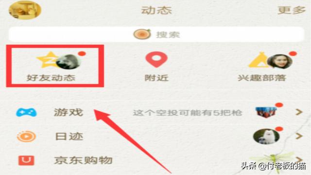 1、打开手机QQ,点击【好友动态】进入QQ空间。