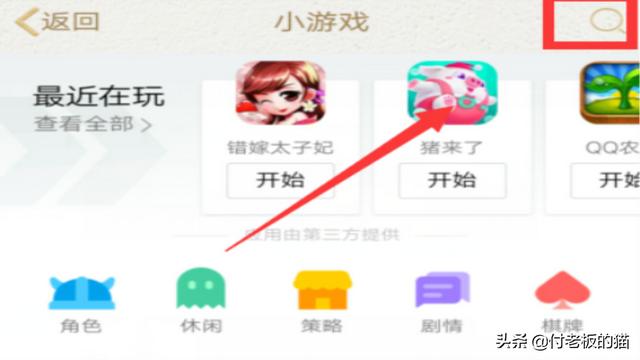 2、进入后点击【小游戏】,然后点击右上角的搜索按钮。